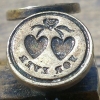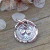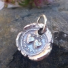 This stamped charm was created in pure silver (99.9%) using an antique wax stamp, with the word "FOR EVER" accompanied by two hearts intertwined at the top.