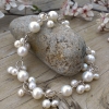There is something I adore about pearls (maybe it's the SCUBA diver in me?), but I can't tell you how much the weight, feel and glow of pearls appeals to me. Lovely, luminous freshwater pearls - each approximately 8mm - in creamy white have been linked by hand with sterling silver wire to a round sterling hoop. Each hoop is embellished with freshwater pearl charms in a complementary creamy-white hue. This is one of my more popular bracelets, and although it originated as a bridal piece, it is classic enough to complement a business suit or flirty sundress!