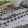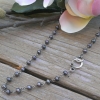 I absolutely love freshwater pearls, and I adore how contemporary they look when linked together with sterling silver wire. Called a "rosary link," this method of creating a chain of pearls uses fine gauge sterling silver wire (which I've oxidized to bring out the detail and create depth & texture) wrapped into tiny loops to securely attach one freshwater pearl to the next. Each pearl is approximately 4mm, and a lovely purple-blue shade of grey.