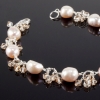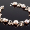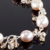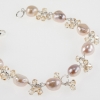 Lovely, luminous freshwater pearls - each 6mm to 8mm, or more - in a subtle shade of the palest peachy-pink have been linked by hand with sterling silver wire to a round sterling hoop. Each hoop is embellished with Swarovski Crystal charms in a lovely, complementary golden hue, creating a subtle, feminine bracelete that is sure to quickly become a favorite piece!