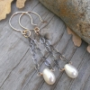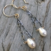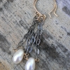Cream pearl earrings are created using both oxidized sterling silver chain and 14K gold filled wire. I love how the grey & gold metals is such a high contrast to the creamy white freshwater pearl drops! The luster of these pearls is amazing!