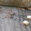 Each creamy freshwater pearl measures about 6mm x 10mm. (Please keep in mind that these pearls are created by Mother Nature and will therefore vary slightly in size) I have used 14K gold filled wire to secure the pearls to sterling chain, which I've oxidized to instill a lovely patina. Handforged earwires reinforce the contrast of the metals.