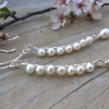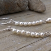 For these earrings, I've handforged heavy gauge sterling wire with a gentle curve to serve as a frame for showcasing beautiful, creamy 4mm freshwater pearls. The small pearls have been wrapped securely to the frame using delicate sterling silver wire. To add movement and a little pizzazz (is that even still a word?), I've added a pearl charm (about 6mm in length) at the bottom of each earring.