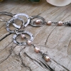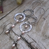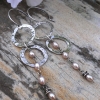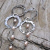 Double Hoop Charm Earrings - Hammered Sterling Circles & Linked Pink Pearls with Wonky Wrap