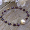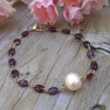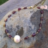 Garnet & Gold Links with Large Cream Pearl Focal Centerpiece - 14K Gold Filled