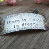 The large handstamped sterling medallion (approximately 18mm x 45mm) says, "there is magic in dreams." I love the message, which was inspired by a dream I had recently, as well as some personal & professional changes & growth. And while it was inspired by my dream, I think it can also be a nice reminder to our grown selves that we need to believe in the power and MAGIC in our own dreams.