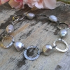 Grey Pearl & Hammered Circle Link Bracelet - Oxidized Sterling