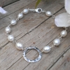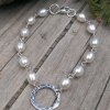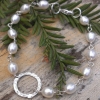 Hammered Circle Focal & White Pearl Link Bracelet - Oxidized, Polished