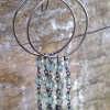 Each hoop is a slightly less than one inch across, and the earwire extends directly from the hoop. This makes a nice, simple earring to dangle lots of little gemstones! Slightly asymetrical cascades of gems - each about 3.5mm - hang from the hoop and catch the light beautifully! The last gem is snuggly secured with my signature "wonky wrap," which adds a nice detail and the appearance of weight and balance to the pieces. (Don't get me wrong - they're still nice, lightweight earrings that won't drag you down!)