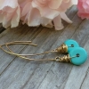 Howlite "Coin" rounds - each measuring approximately 12mm in diameter - are a remarkable blue, and the perfect color for Summer! The briolettes dangle from handforged 14K Gold Filled earwires & are finished with a variation of my signature wonky wrap.