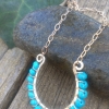 Gorgeous bright blue Kingman Mine Turquoise rondelles, each about 3 x 4 mm, have been wrapped securely on a handforged 14K Gold Filled frame with 14K Gold Filled wire. I love these turquoise gemstones- the color is a bright, Robin Egg blue, and just gorgeous! You won't see stones like this on a huge belt buckle; this turquoise is refined & feminine & looks lovely with gold.