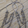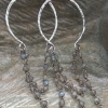 Each open hoop is handforged, hammered and oxidized to bring out the texure. Two strands of rosary linked Labradorite sway from the bottom of the hoops, playing with the light and adding sparkle to these earrings. (50 gemstones in the pair!) Handforged earwires (also oxidized & highly polished) are secured to the top of each open hoop.