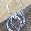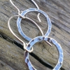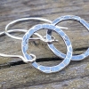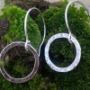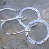 Sterling silver circles have been handforged, soldered, hammered and oxidized, then polished to a high shine. The oxidation brings out the texture of the hammering, and the high polish makes the circles look almost as though they are faceted.