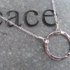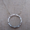 Suspended on a dainty sterling chain, the necklace adjusts from approximately 16 to 18 inches. The circle measures approximately 5/8 of an inch across.