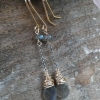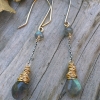 Mixed Metal Labradorite Earrings- Labradorite Briolettes wrapped in 14KGF Wonky Wrap on Oxidized Sterling Chain