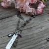 Gorgeous faceted Labradorite gemstones are linked together using oxidized sterling wire, each securely attached to the next & separated by oxidized sterling chain. Five sparkling Mystic Labradorite rondelles - about 6mm or so - secure bolder oxidized sterling chain to the clasp and creates a funky, asymmetrical look. An array of gemstones - Pyrite Briolette, Labradorite & a Rhodolite Garnet briolette - dangle freely from the hammered circle. I've also added a handstamped sterling medallion (approximately 10mm x 28mm) which says, "devotion." I love the message - perfect for mommas, girlfriends, wives & besties! - which was created at the request of a special client.