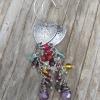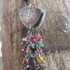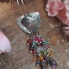Both the shield and the wire have been oxidized and polished, which brings out the texture & shine! To dress up the rustic feel of the shield, I add a cascade of ruby, amber, topaz, peridot, moonstone, quartz and other gemstones. A lovely little amethyst briolette dangles at the bottom and is finished off with my signature "wonky wrap." The cascade measures about 1.25 inches. The sterling shield is approximately 5/8" across. Including the handforged sterling earwire, these little beauties measure approximately 2.75 inches overall. They are long, but they are dainty!
