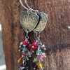 Shield Earrings in Hammered Sterling with Gemstone Cascade Finished with Wonky Wrap