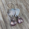 Shield Earrings in Hammered Sterling with Pink Quartz Brioletted Finished with Wonky Wrap