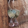 To dress up the rustic feel of the shield, I add a pink quartz briolette (other gemstones are available - just ask!) and finish it with my signature "wonky wrap." Both the shield and the wire have been oxidized and polished, which brings out the texture & shine! The sterling shield is approximately 5/8" across & the briolette is approximately 10mm in length. Including the handforged sterling earwire, these little beauties measure 1.75 inches overall.