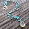 Sleeping Beauty Turquoise Linked Gemstone Necklace with Vermeil Quartz Pendant & Handforged Clasp - 14K Gold Filled