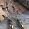 Here I have secured an 18k gold plated brass plumb bob to handforged 14K Gold Filled earwires, using a foot of oxidized sterling silver wire. This can bring just a hint of steampunk whimsy to your business suit, or a classic look to a Fall sweater. The 14k Gold Filled earwires are incredibly comfortable and are a nice finish to the earrings. The earrings measure just about 2 inches.