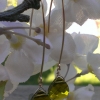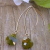 Beautiful, vibrant Swarovski Crystal flat briolettes in Olivine (a deep, bright green) have each been captured with 14K Gold Filled wire, and dangle from long, slender, curved "V" earwires. Talk about something simple making a statement.
