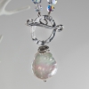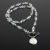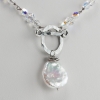 A 10+mm Freshwater Coin Pearl has been abundantly wrapped in oxidized sterling and dangles sweetly from the toggle clasp.