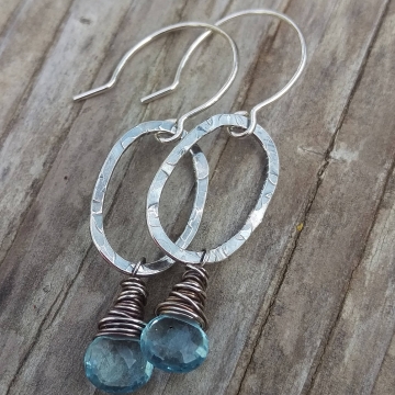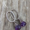 A Grade A amethyst briolette in the deepest, lushest purple dangles from the oval and is finished with my signature "wonky wrap." The amethyst measures approximately 9 x 9mm. Including the handforged sterling earwire, this earrings measures approximately 2 inches in overall length.