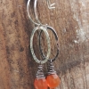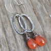 A Grade A carnelian briolette in a deep, lush burnt orange dangles from the oval and is finished with my signature "wonky wrap." The carnelian measures approximately 10 x 8mm. Including the handforged sterling earwire, this earrings measures approximately 2 inches in overall length.