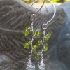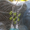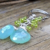 The piece shown is created with little (3 - 4mm) faceted Vesuvenite rondelles in a bright green and sterling silver. The gorgeous, sea green-blue Chalcedony briolette measures approximately 10mm across, and catches the light beautifully with each movement. (As a SCUBA diver I especially love how Chalcedony is so reminiscent of sea glass.) From the top of the handforged sterling earwires, the overall length is approximately 2.5 inches.