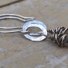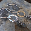 For a rustic, slightly industrial look, I've paired my signature wonky wrap with a hammered & lightly oxidized loop from which the gemstone dangles freely. (It was fun photographing these in the Northern California wind today - they sure love to sway!)