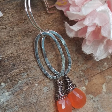 Textured Sterling Oval & Carnelian Briolette Charm Earring
