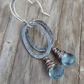 Textured Sterling Oval & Sky Blue Quartz Charm Earring