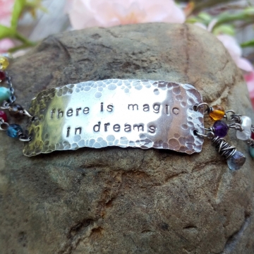 Gemstone Link Bracelet with Message - Handforged Clasp, Hand-stamped Medallion & Gemstone Charms