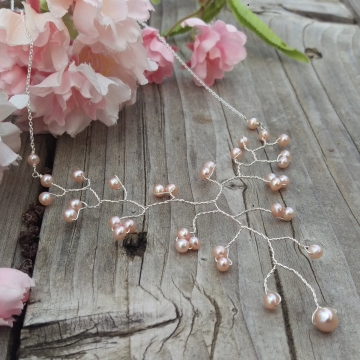 Vine Collection Petite Necklace - Peachy-Pink Freshwater Pearls in Sterling Silver