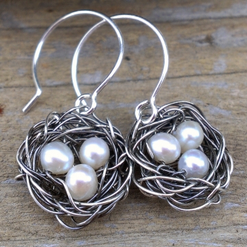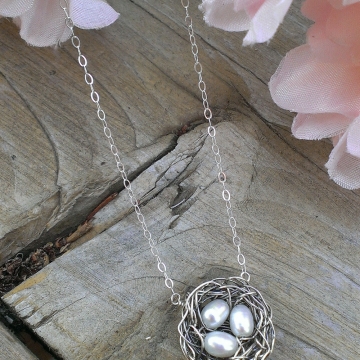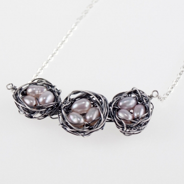 Nest Necklace - Single Nest, Trio in White, Pink or Peacock