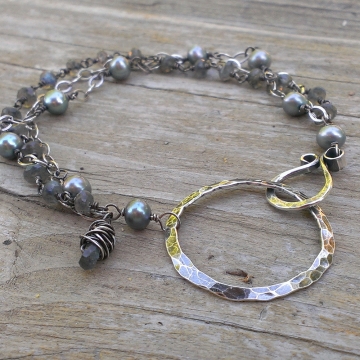Multi-Strand Link Necklace with Gemstone, Pearl & Insignia Charms