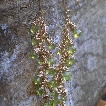 Peridot Cascade Earrings in 14K Gold Filled - OOAK