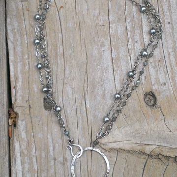 Pearl Charm Necklace - Pewter Pearls, 22 inch length, adjustable