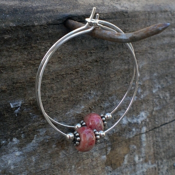 Handforged Sterling Hoop with Fossilized Coral & Sterling Bead Accents - Large