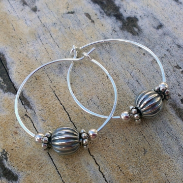Handforged Sterling Hoop with Sterling Bead Accents - Medium