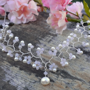 Vine Collection - Moonstone & Pearl Necklace on Sterling Silver Wire