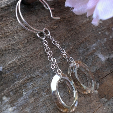 Champagne Swarovski Earrings - Cosmic Oval Cut Swarovski dangles from sterling chain on handforged sterling hoops