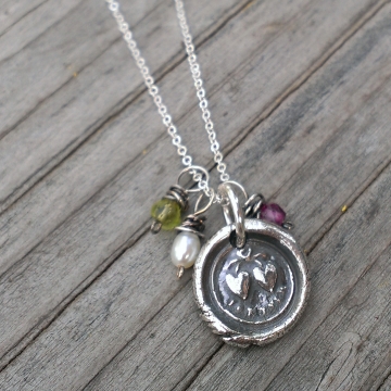 Celebrity Gifting - Mother's Day, 2014 / "For Ever" Antique Insignia (.999 Silver) on Dainty Chain with Birthstones